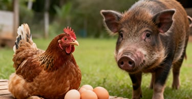 Ovos e galinha caipira /carne suína
